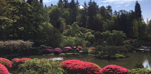 Revised: When I moved the green leaves of the plant aside, I could see the bright red strawberries; they were perfect for picking.